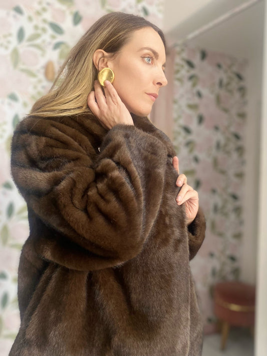 BORSA REBECCA A SPALLA VELLUTO MARRONE NALI