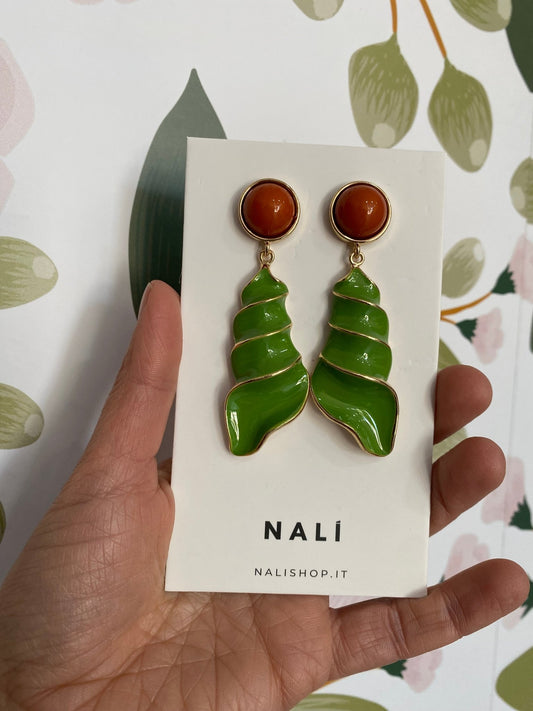 In offertaORECCHINI SPIN LUNGHI SMALTATI VERDE NALI