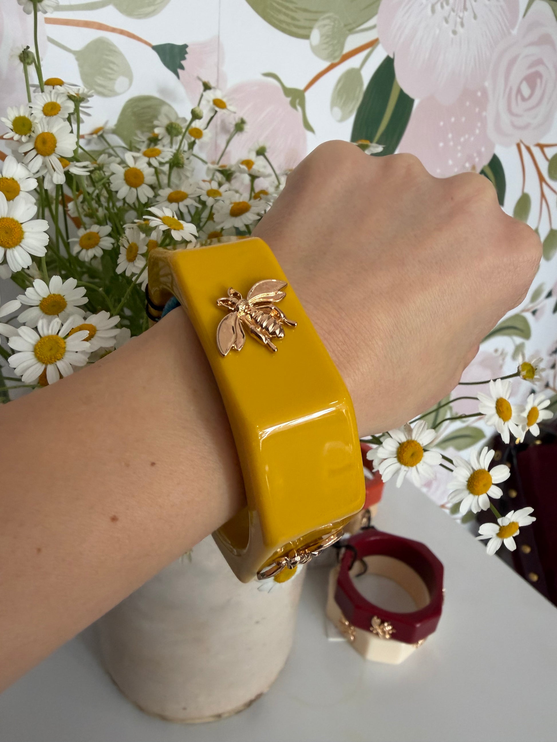 Il Bracciale Rigido Bee è il dettaglio luminoso che trasforma ogni look in qualcosa di speciale. Elegante ma giocoso, questo bracciale presenta delle simpatiche api color oro con una raffinata forma sfaccettata, capace di catturare e riflettere la luce ad ogni movimento.