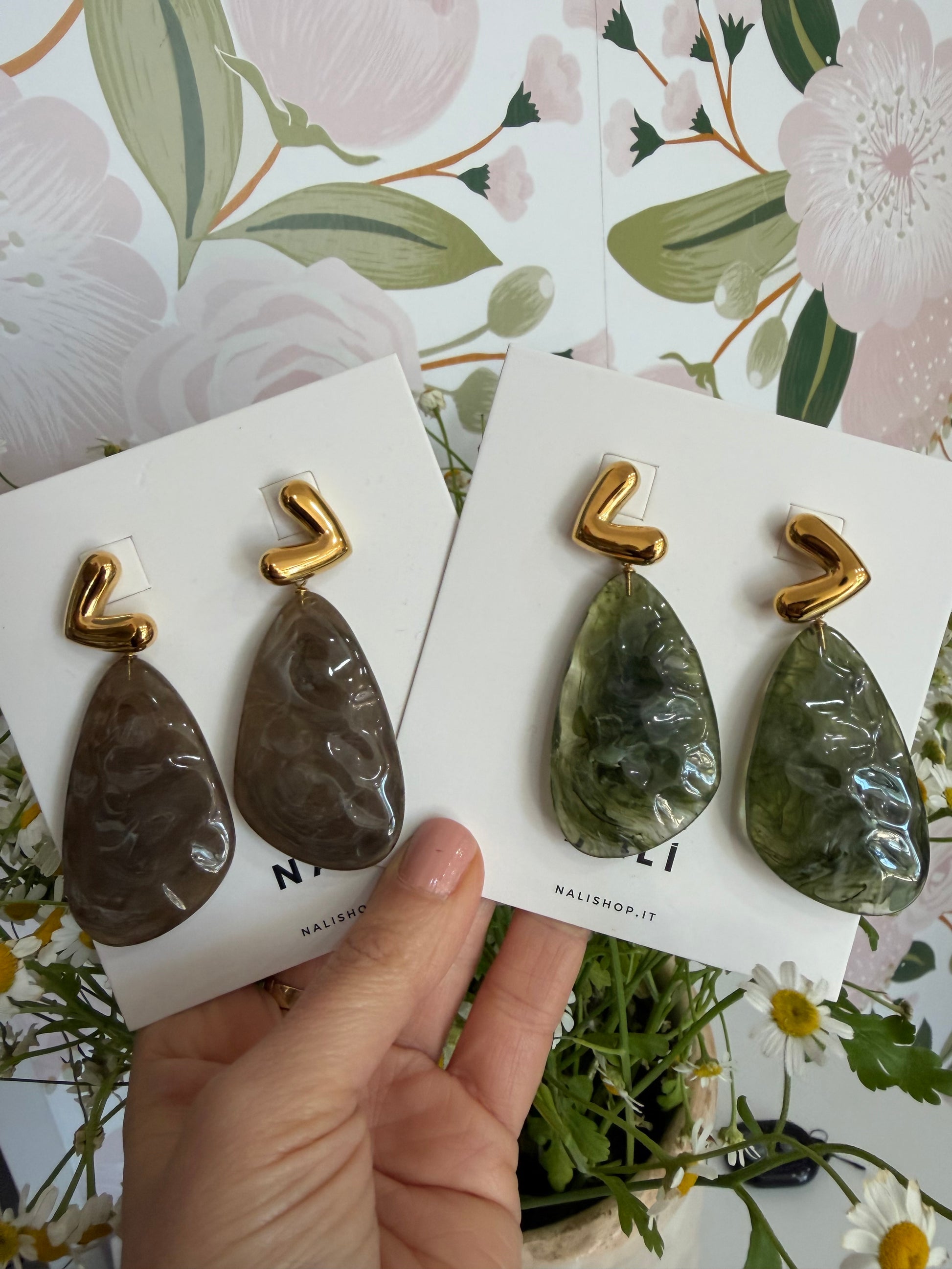 Orecchini Ginevra Pendente Ovale Oro/Verde – NALì